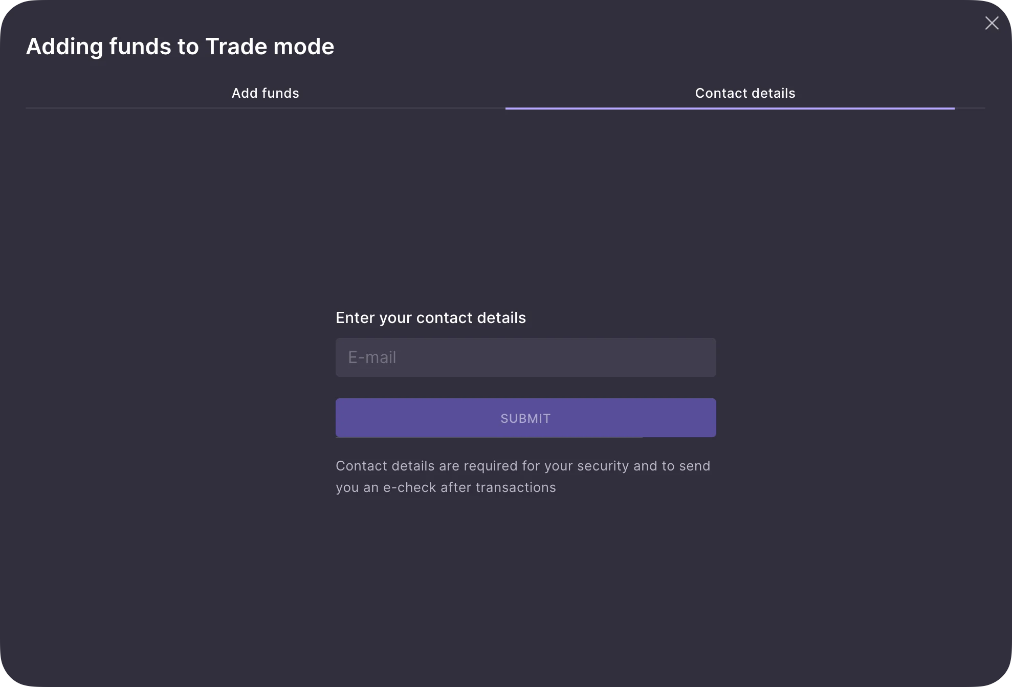- If your CS.MONEY profile does not contain an email address, you will see a window where you must enter it. This data is necessary for the payment system to process your payment successfully, so enter a valid email address.
